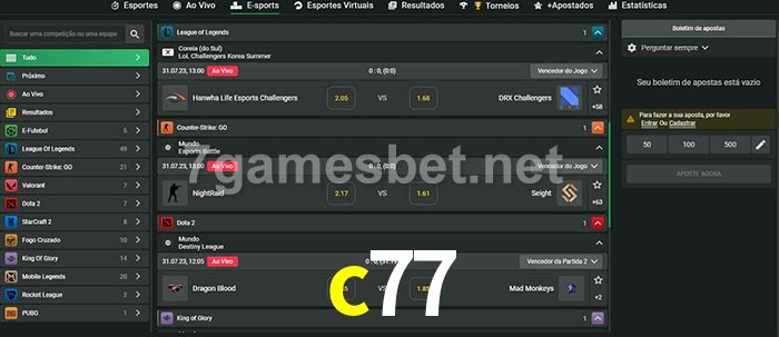 A aposta c77 oferece aos jogadores a experiência mais conveniente de apostas em eSports!